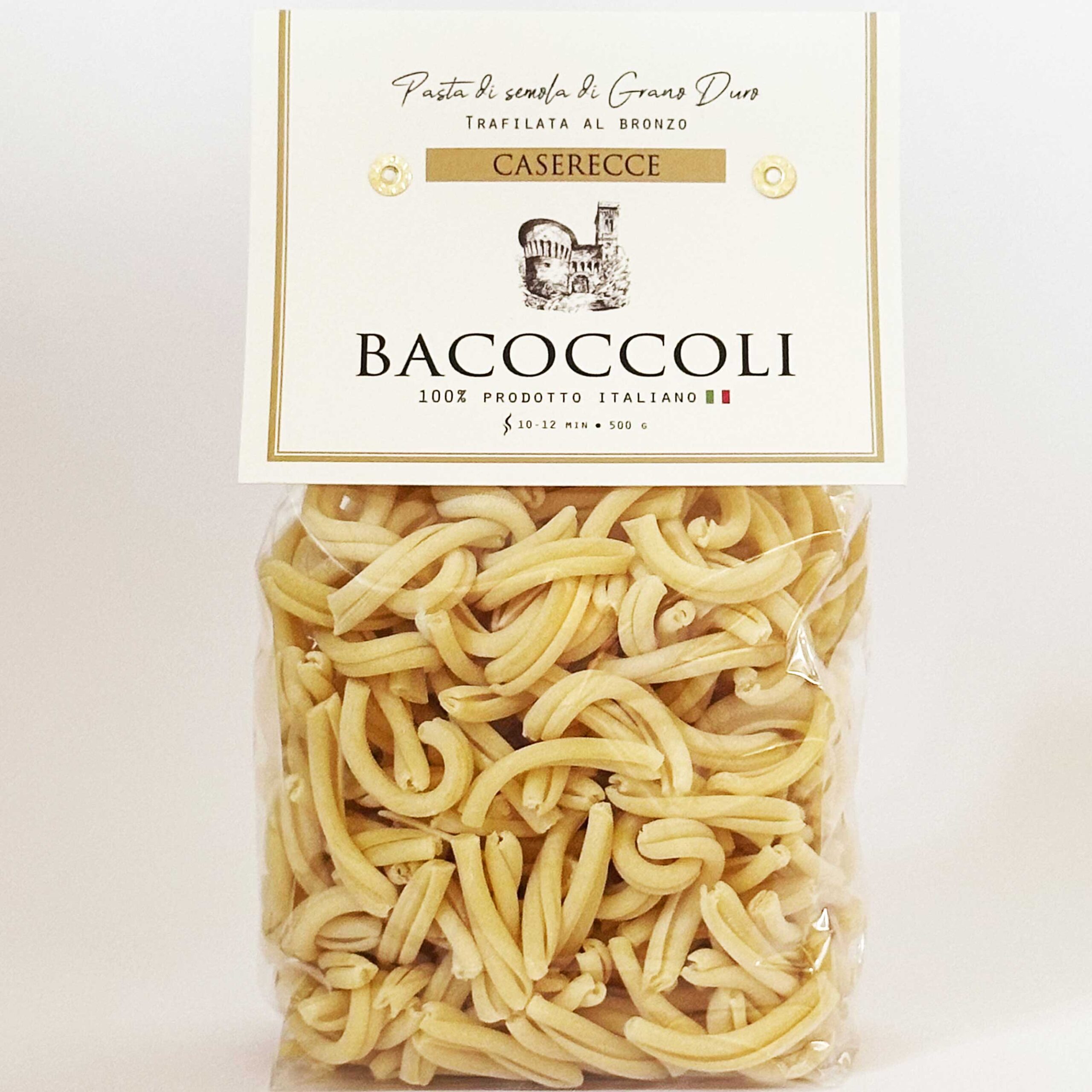 Det som skiljer Bacoccolis pasta från andra är tillverkningssättet, som bland annat får pastan att uppfattas som färsk, fast den i själva verket är torkad. Pastan är tillverkad av samma familj sedan 1949. Deras mål är, utöver att pastan ska uppfattas som färsk när vi äter den, att såsen ska fastna på pastan. Därför har familjen utvecklat metoder för detta under årens gång. Tillverkningen sker över lag med låga temperaturer, lågt tryck och med långa torktider. Dessutom är både bronsvalsar och andra cylindrar specialtillverkade. Hemligheten till en god pastarätt är kombinationen av pastan och såsen. Ingredienser: 100% italienskt durumvete, odlat och framställt i Italien, vatten